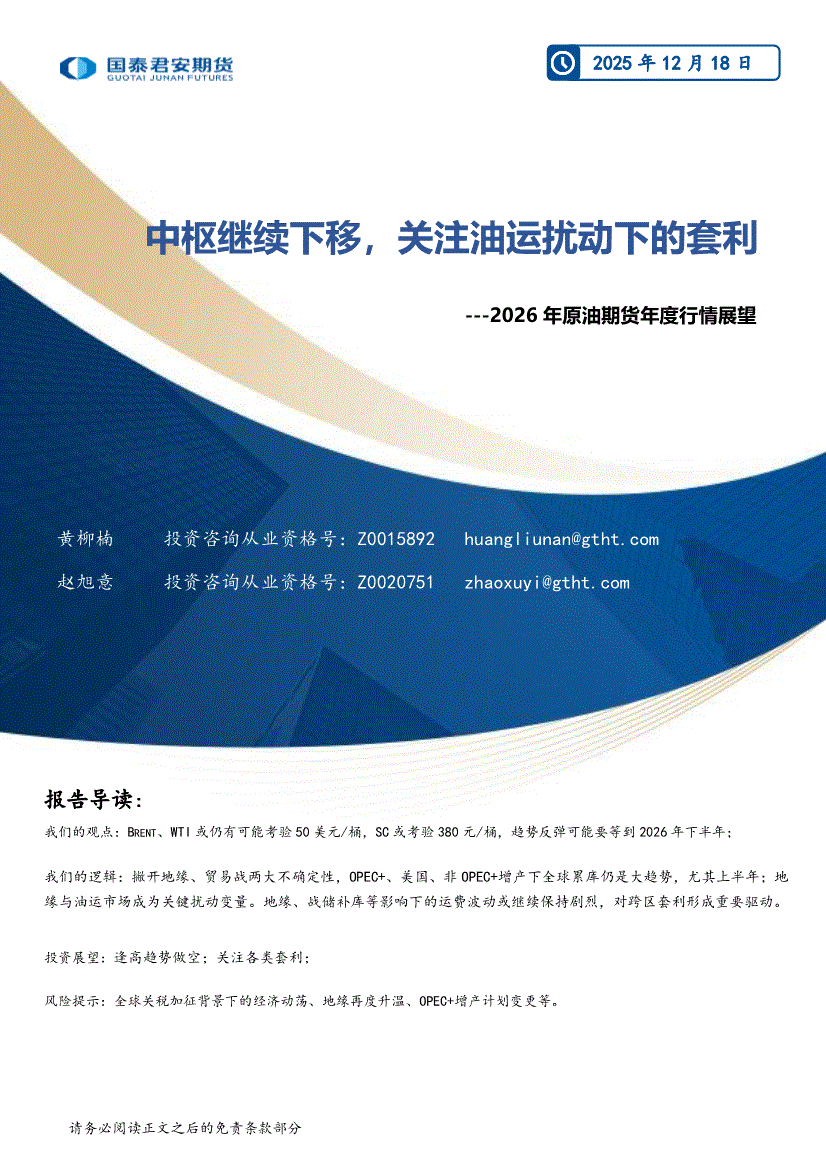 国泰君安期货-2026年原油期货年度行情展望:中枢继续下移,关注油运扰动下的套利-251218