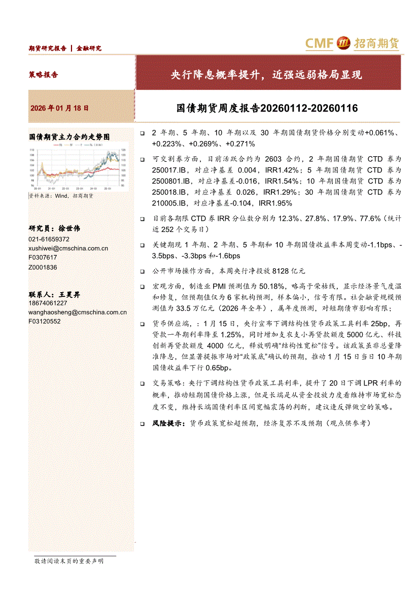 招商期货-国债期货周度报告:央行降息概率提升,近强远弱格局显现-260118