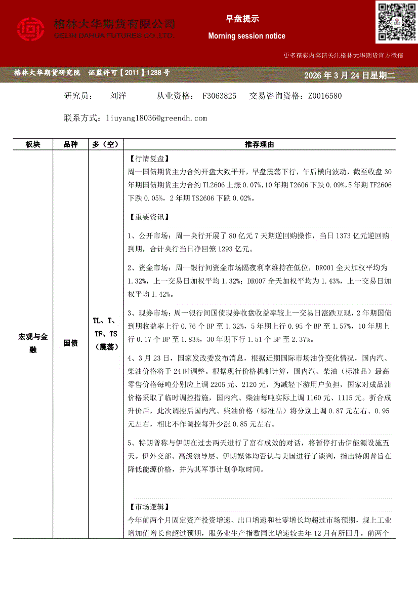 格林大华期货-早盘提示:国债-260324