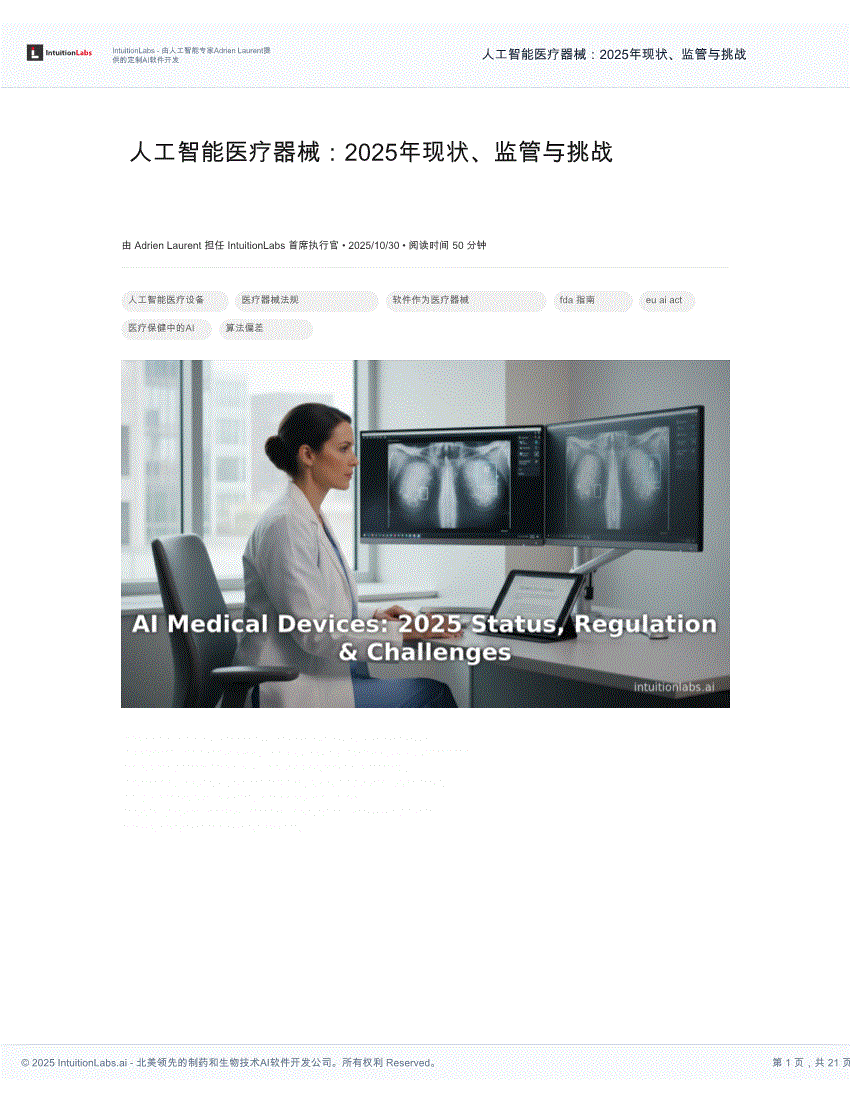 人工智能医疗器械行业:IntuitionLabs-人工智能医疗器械行业:2025年现状、监管与挑战-251030