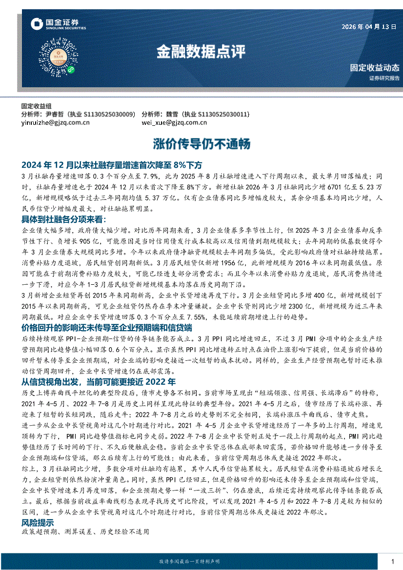 国金证券-金融数据点评:涨价传导仍不通畅-260413