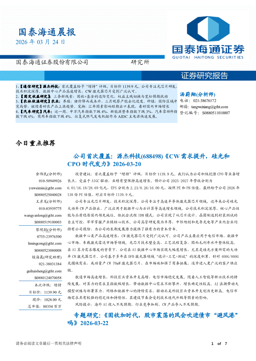国泰海通证券-晨报-260324