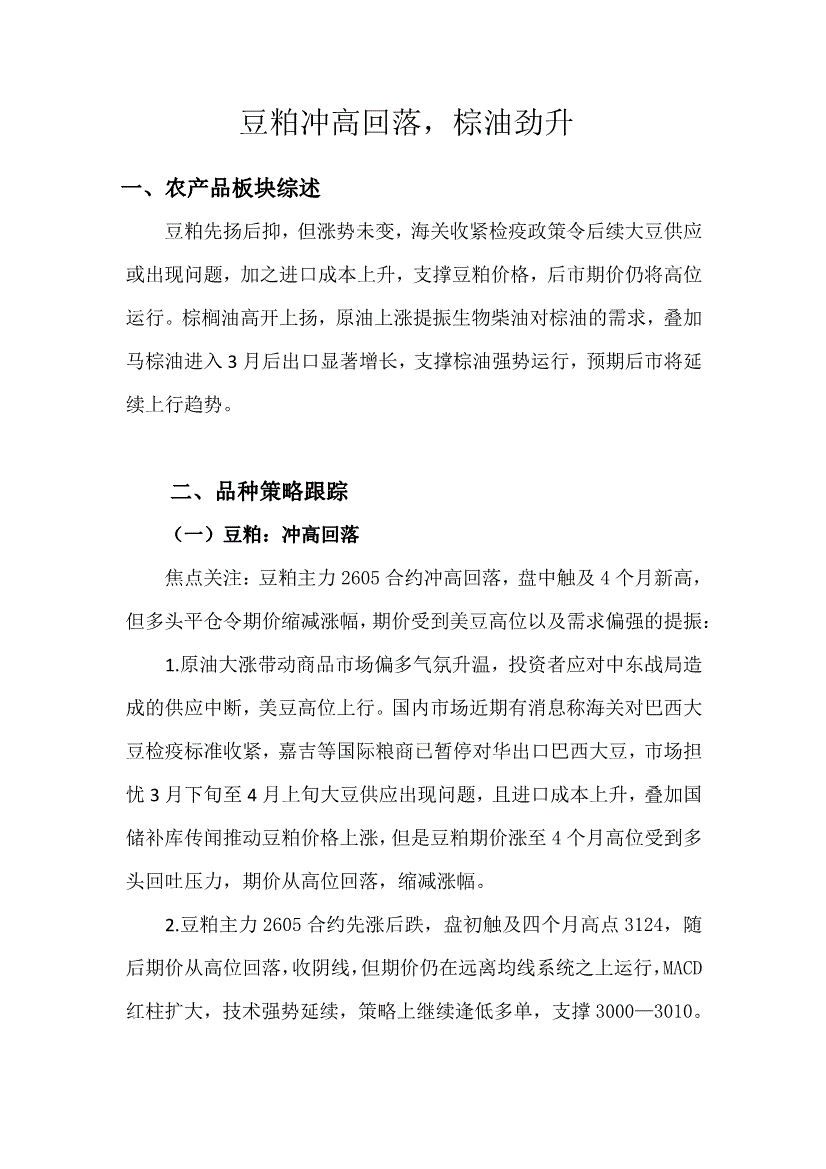 天富期货-豆粕冲高回落,棕油劲升-260312