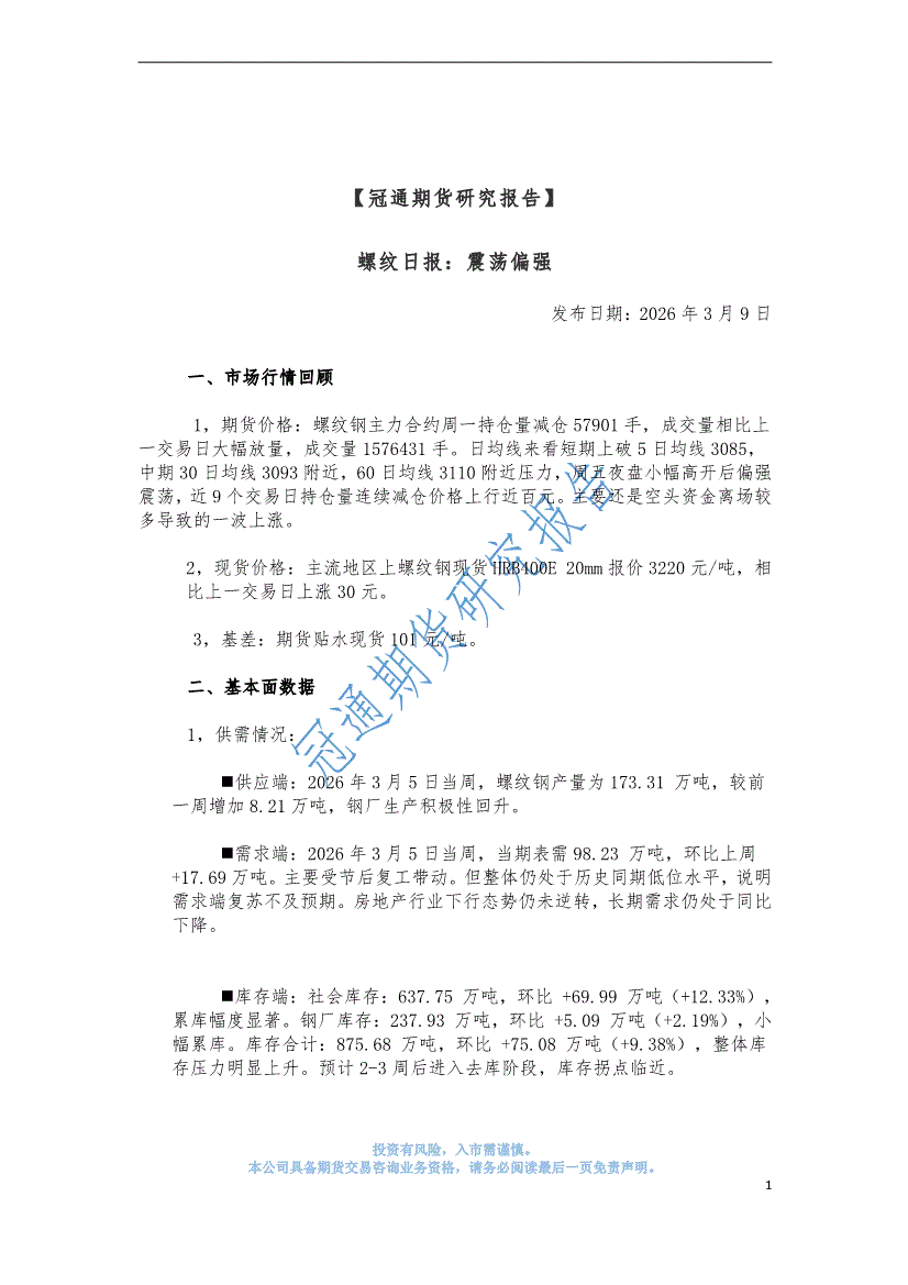 冠通期货-螺纹日报:震荡偏强-260309