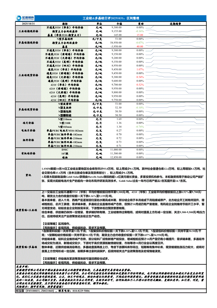 宏源期货-有色金属周报~工业硅&多晶硅:暂无明显变动,价格维持区间整理-251028