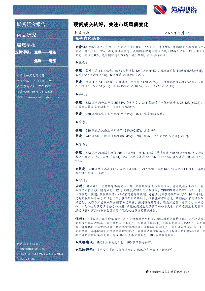 信达期货-煤焦早报:现货成交转好,关注市场风偏变化-260115