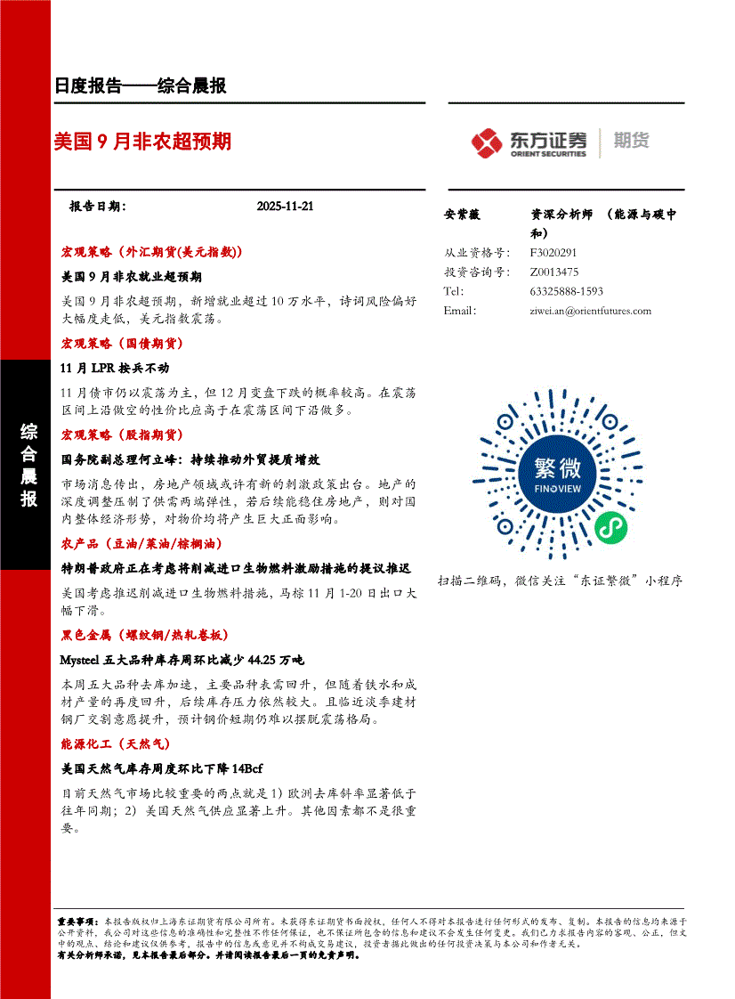 东证期货-综合晨报:美国ADP数据显示劳动力市场继续降温-251119