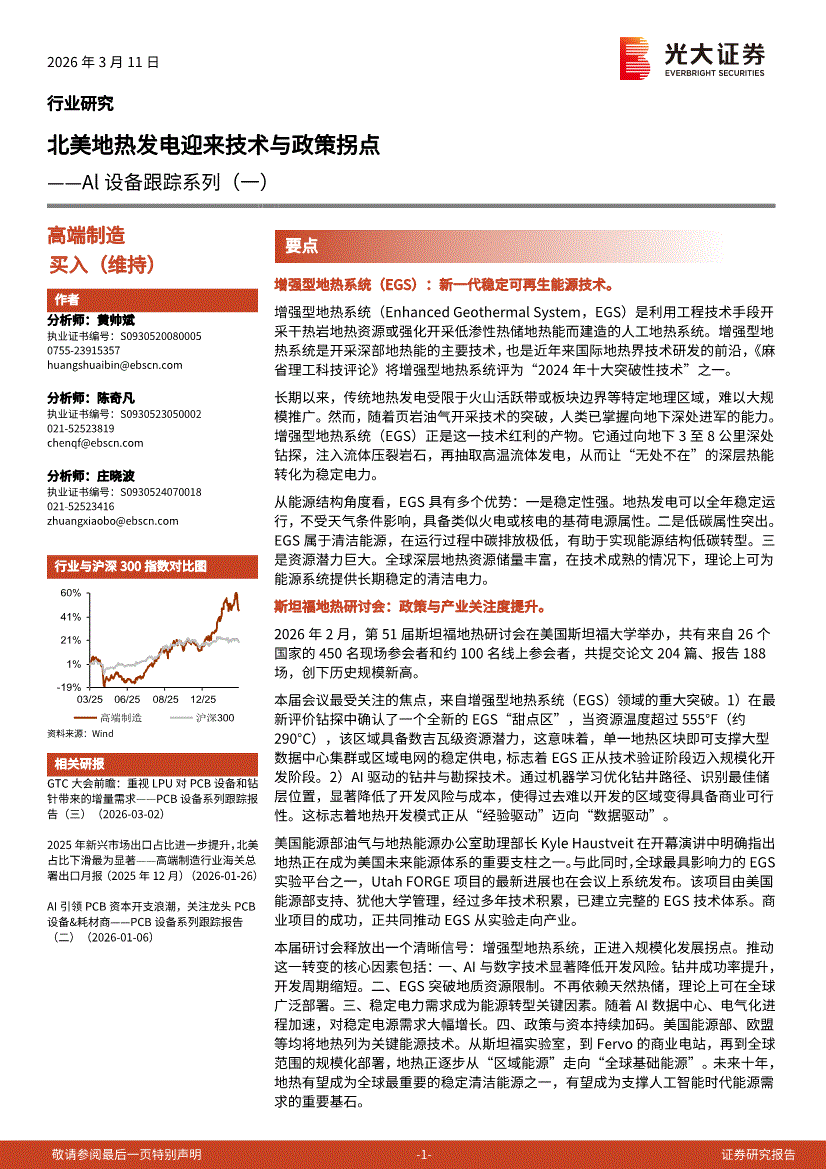 高端制造行业:光大证券-高端制造行业Al设备跟踪系列(一):北美地热发电迎来技术与政策拐点-260311