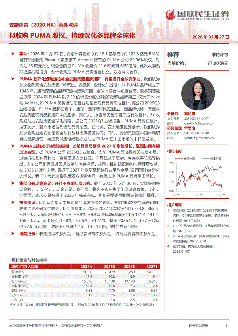 安踏体育:国联民生证券-安踏体育-2020.HK-事件点评:拟收购PUMA股权,持续深化多品牌全球化-260127