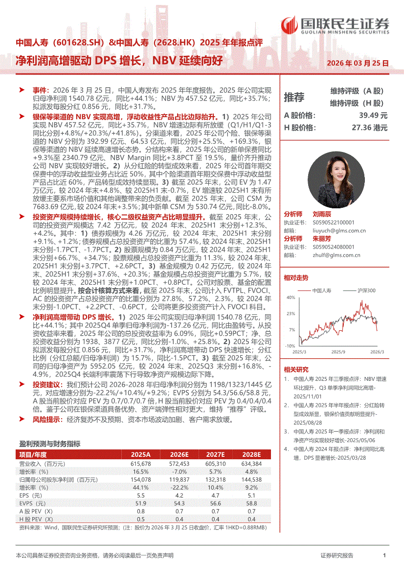 中国人寿:国联民生证券-中国人寿-601628-2025年年报点评:净利润高增驱动DPS增长,NBV延续向好-260325