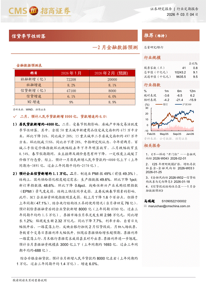 银行业:招商证券-银行业2月金融数据预测:信贷季节性回落-260304