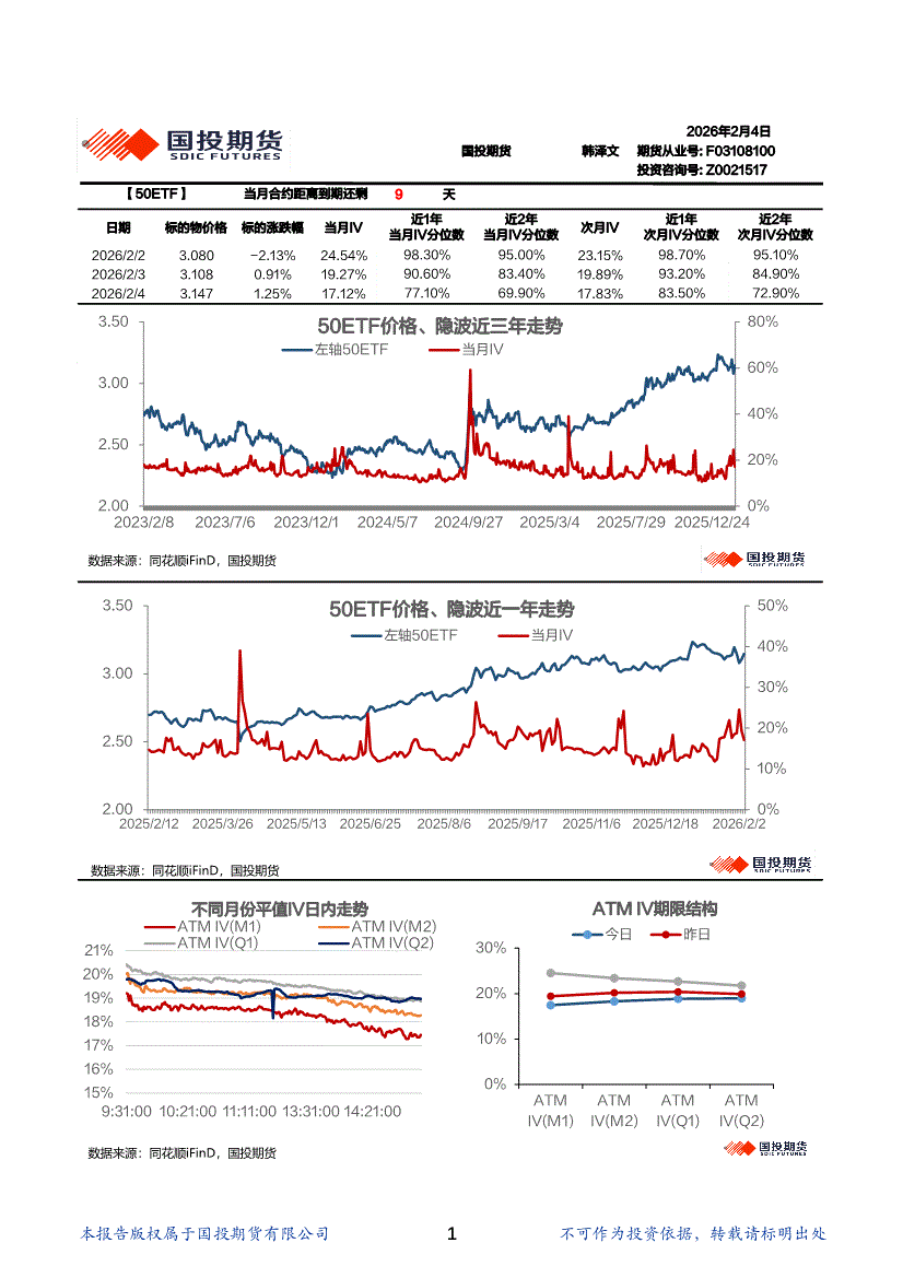 国投期货-金融期权波动率日报-260204