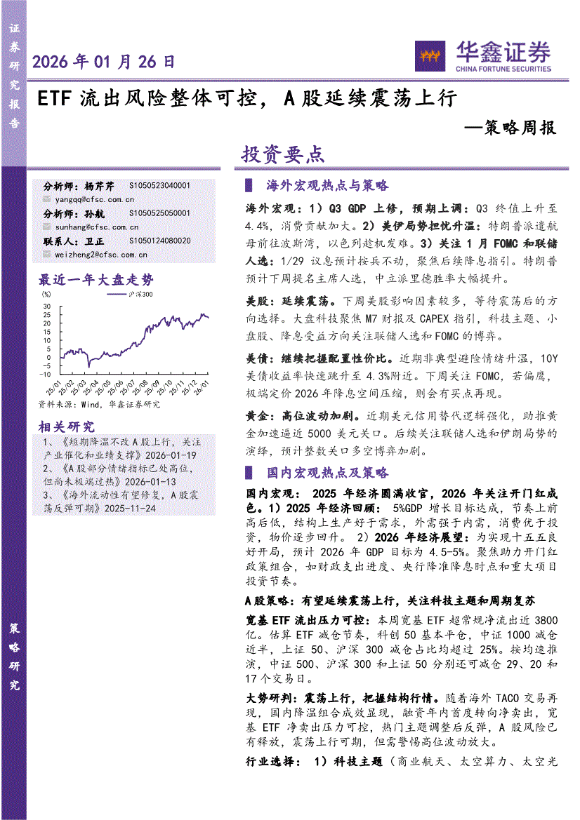 华鑫证券-策略周报:ETF流出风险整体可控,A股延续震荡上行-260126