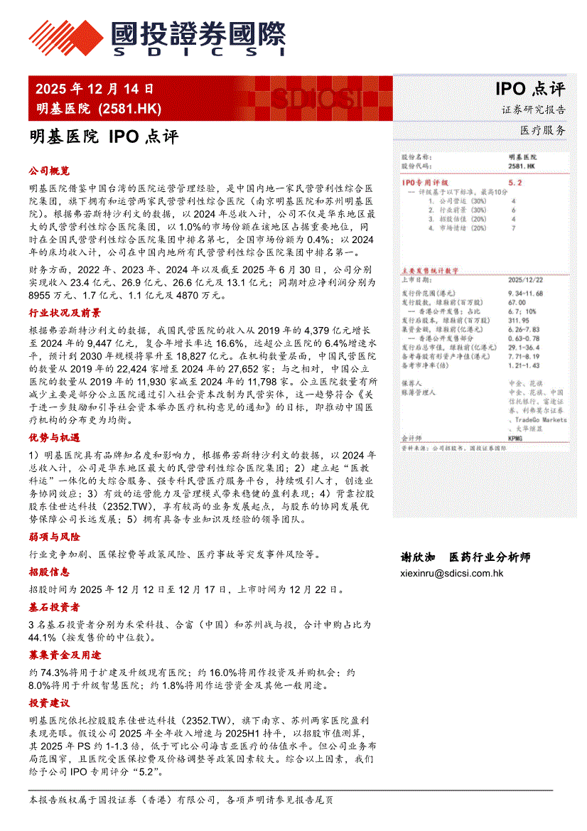 国投证券国际-IPO点评:明基医院 (2581.HK)-251214