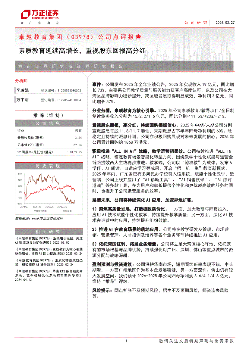卓越教育集团:方正证券-卓越教育集团-3978.HK-公司点评报告:素质教育延续高增长,重视股东回报高分红-260327