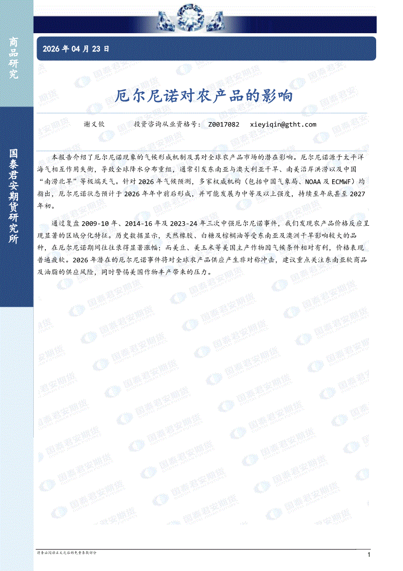 国泰君安期货-厄尔尼诺对农产品的影响-260423
