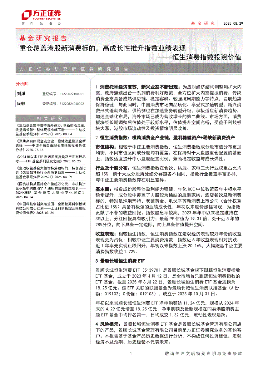 方正证券-恒生消费指数投资价值:重仓覆盖港股新消费标的,高成长性推升指数业绩表现-250829