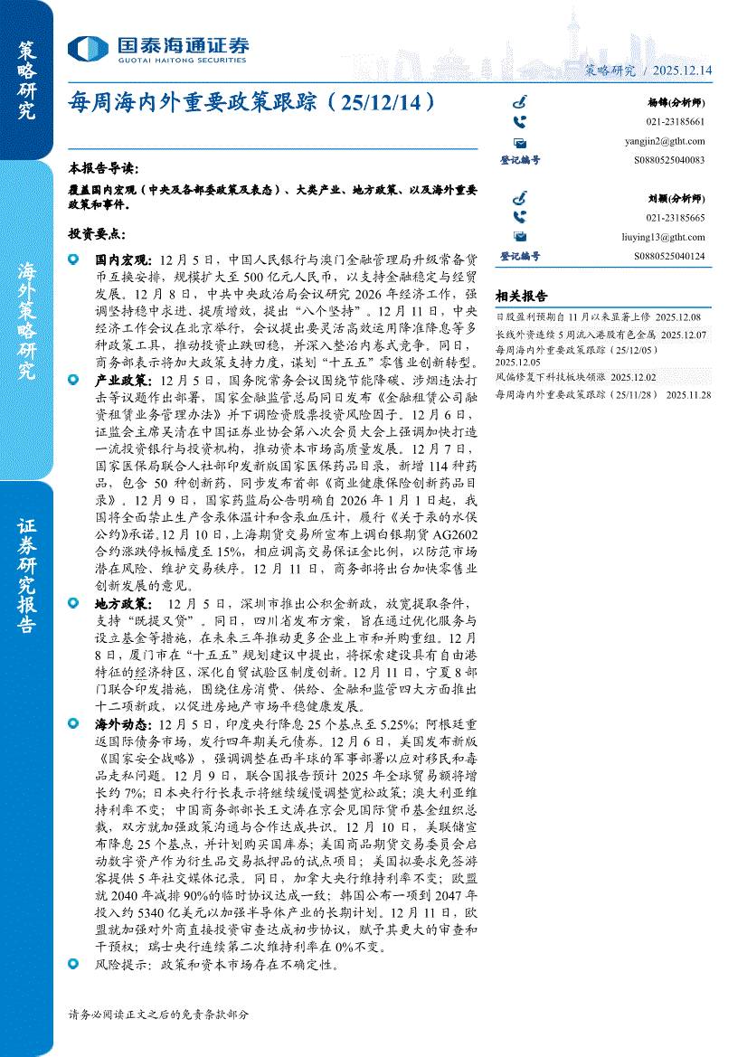 国泰海通证券-每周海内外重要政策跟踪-251214