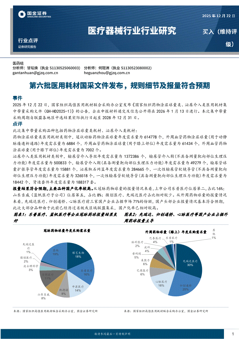 医疗器械行业:国金证券-医疗器械行业行业研究:第六批医用耗材国采文件发布,规则细节及报量符合预期-251222