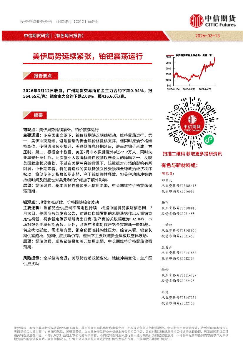 中信期货-有色每日报告:美伊局势延续紧张,铂钯震荡运行-260313