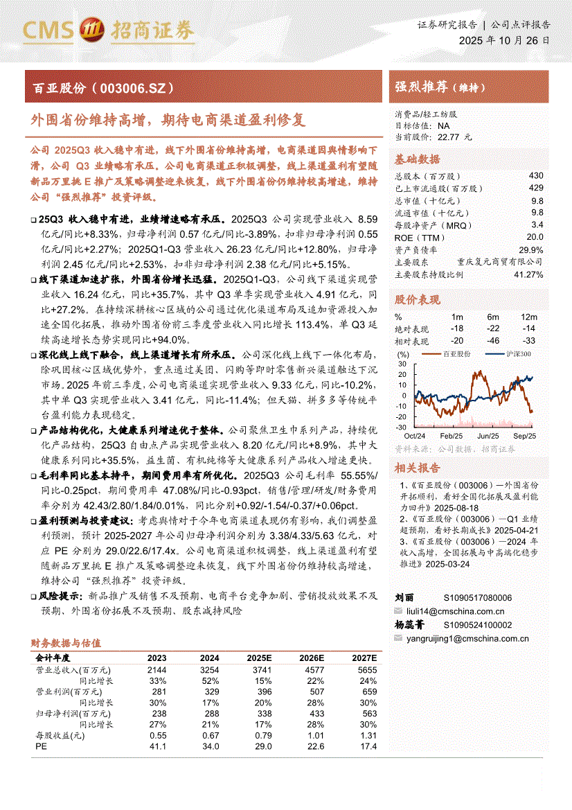 百亚股份:招商证券-百亚股份-003006-外围省份维持高增,期待电商渠道盈利修复-251026