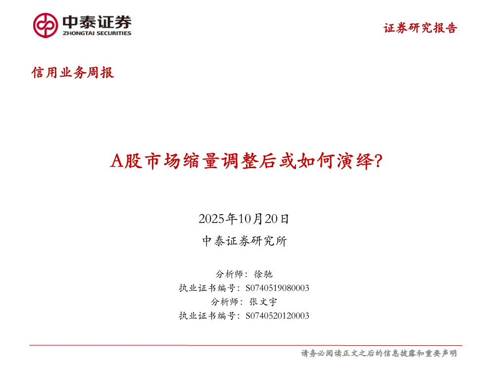 中泰证券-信用业务周报:A股市场缩量调整后或如何演绎?-251020