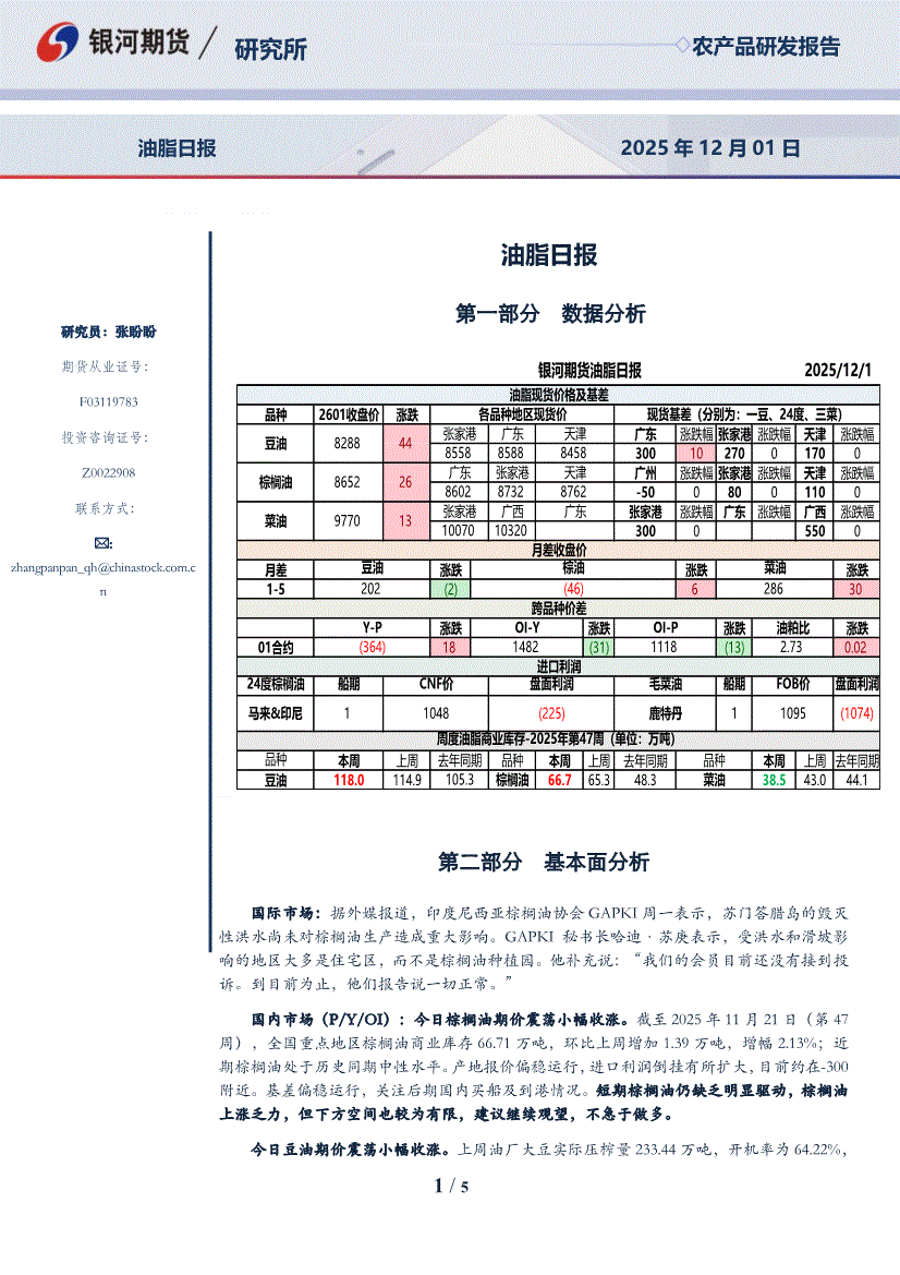 银河期货-油脂日报-251201