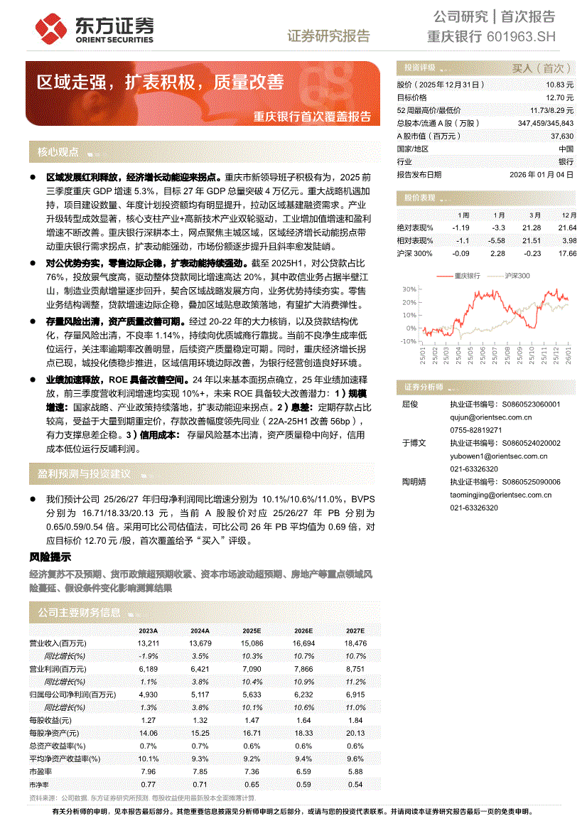 重庆银行:东方证券-重庆银行-601963-首次覆盖报告:区域走强,扩表积极,质量改善-260104