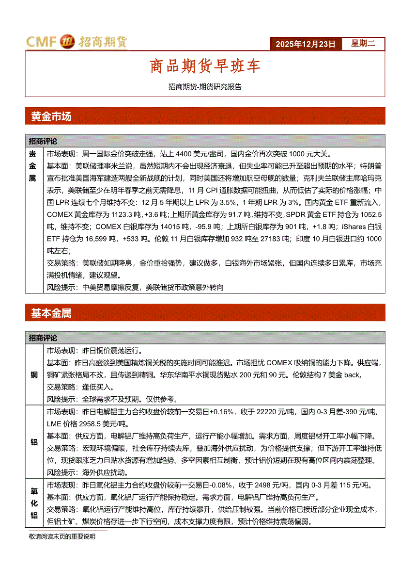 招商期货-贵金属周度报告:COMEX金银同时创出新高-251221