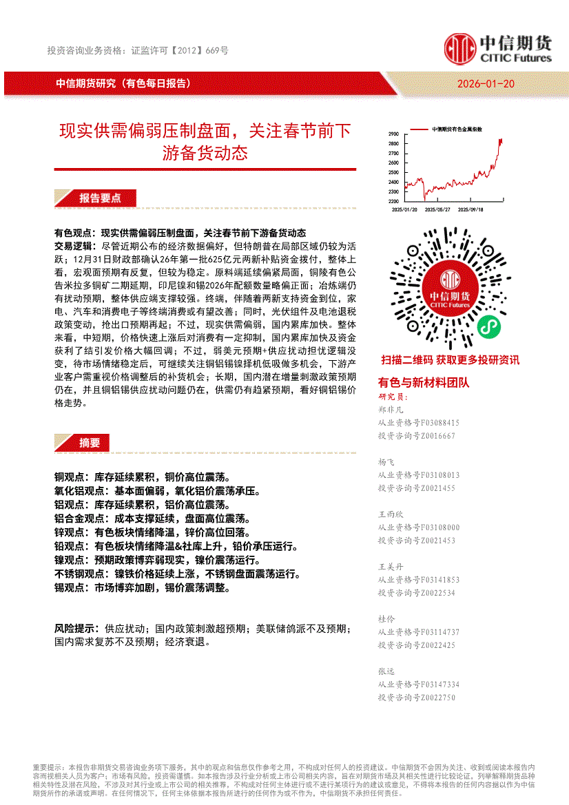 中信期货-有色每日报告:现实供需偏弱压制盘面,关注春节前下游备货动态-260120