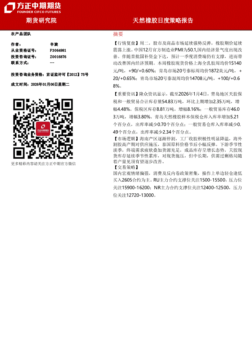 方正中期期货-天然橡胶日度策略报告-260106