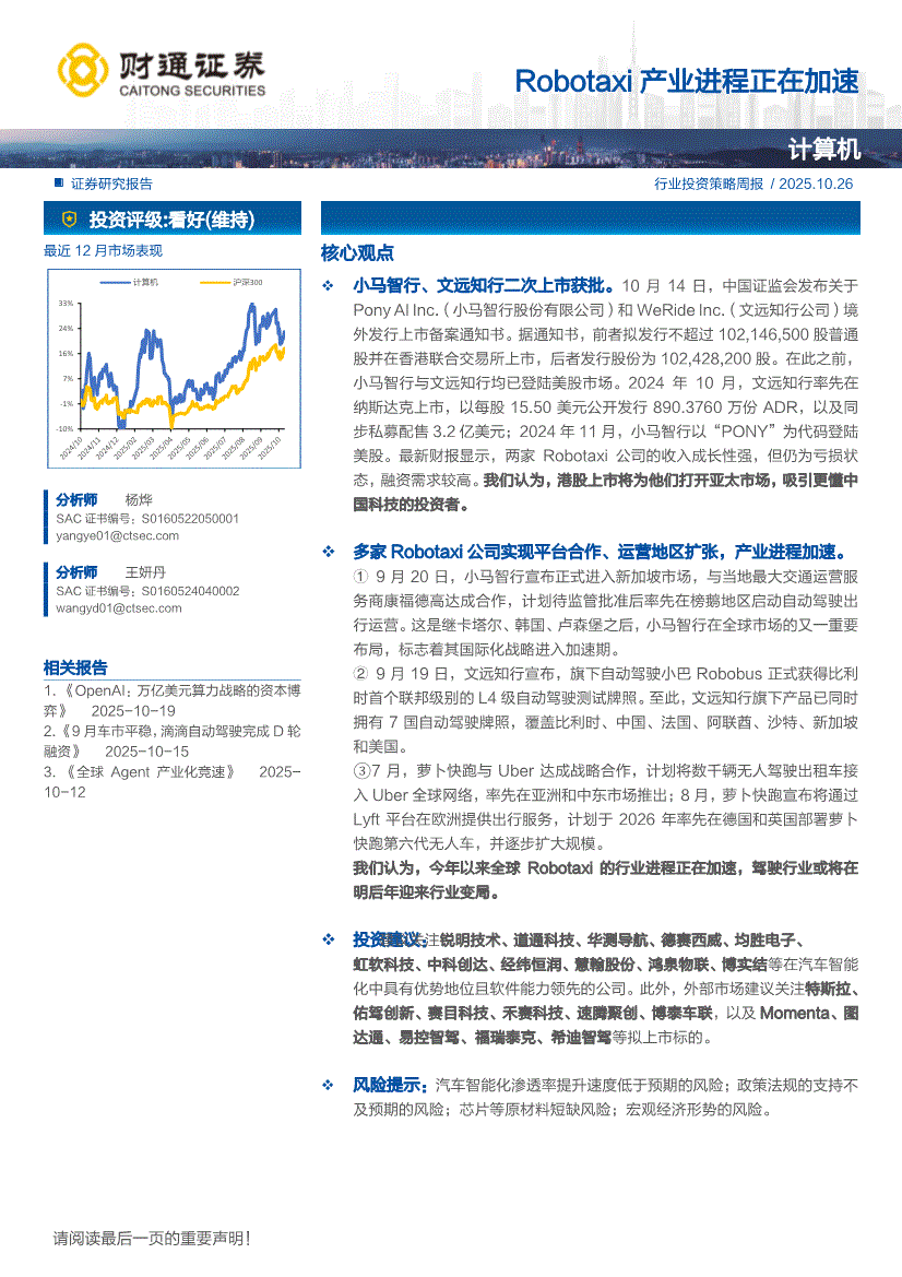 计算机行业:财通证券-计算机行业:Robotaxi产业进程正在加速-251026