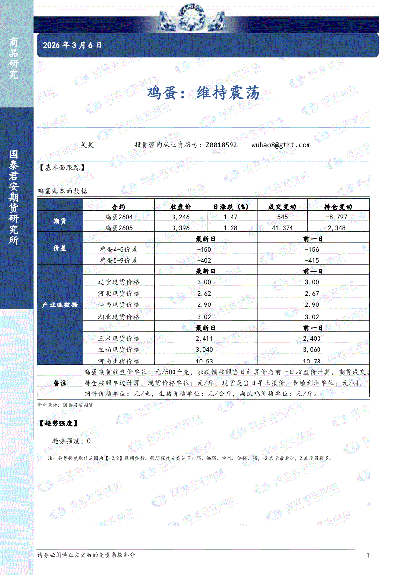 国泰君安期货-鸡蛋:维持震荡-260306