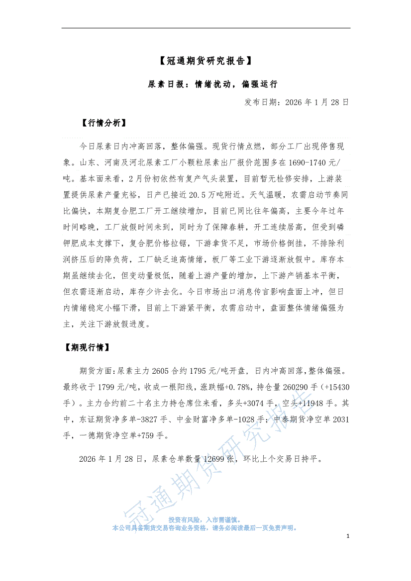 冠通期货-尿素日报:情绪扰动,偏强运行-260128