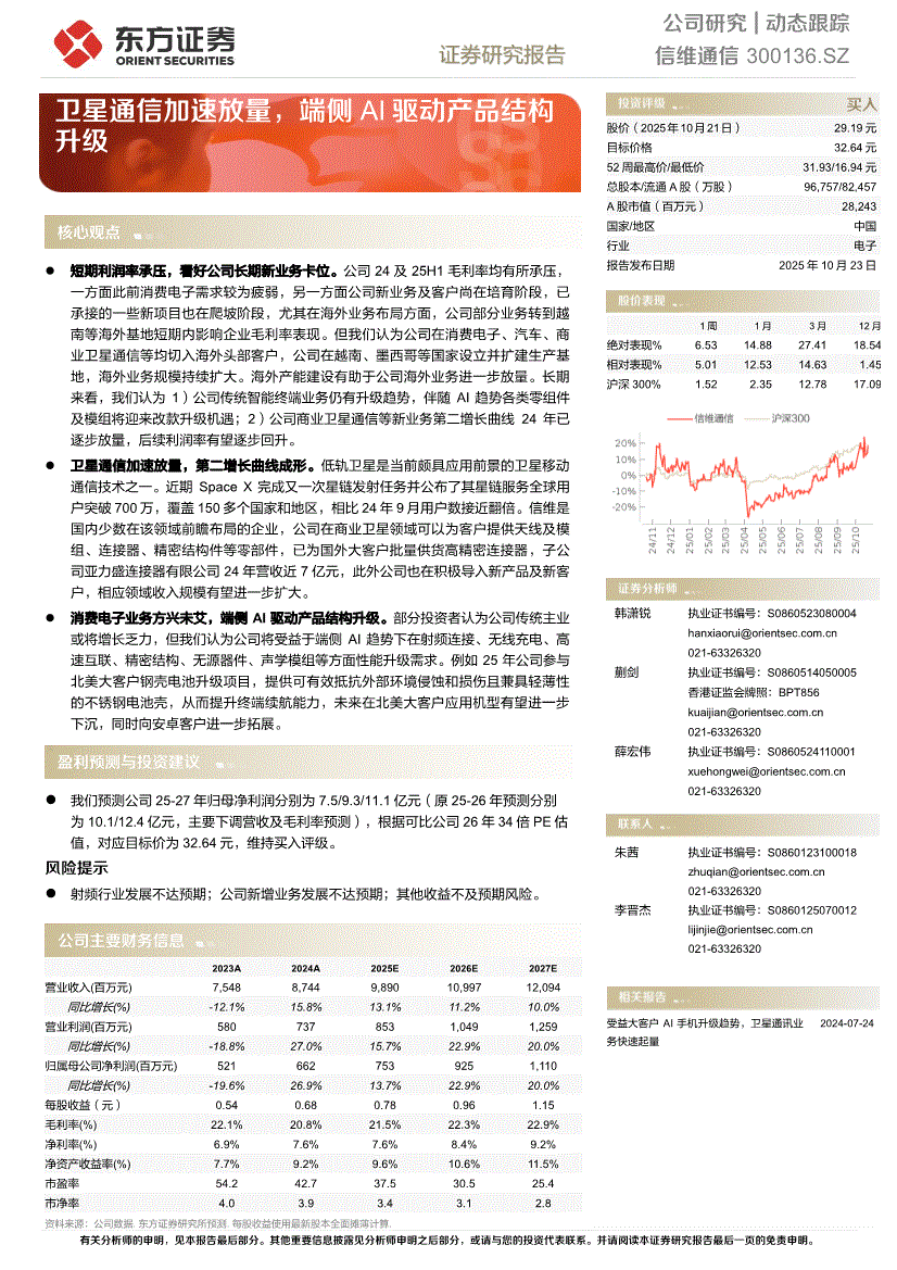 信维通信:东方证券-信维通信-300136-卫星通信加速放量,端侧AI驱动产品结构升级-251023