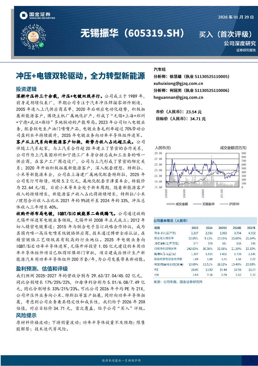 无锡振华:国金证券-无锡振华-605319-冲压+电镀双轮驱动,全力转型新能源-260129