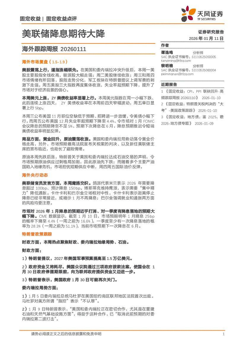 天风证券-海外跟踪周报:美联储降息期待大降-260111