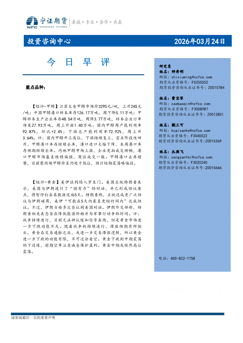 宁证期货-甲醇:港口库存预期继续下降,震荡偏强-260323