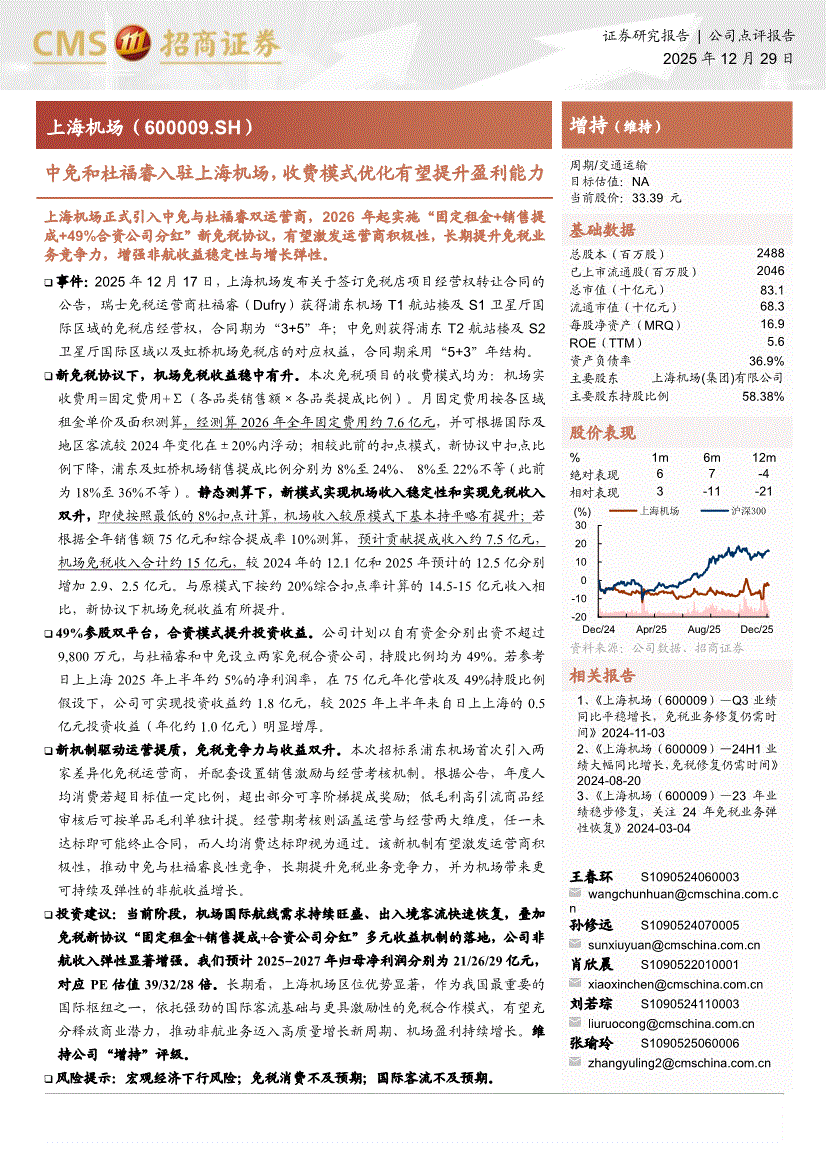上海机场:招商证券-上海机场-600009-中免和杜福睿入驻上海机场,收费模式优化有望提升盈利能力-251229