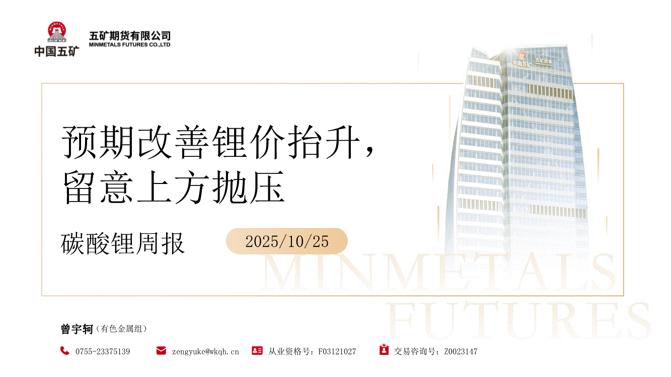 五矿期货-碳酸锂周报:预期改善锂价抬升,留意上方抛压-251025