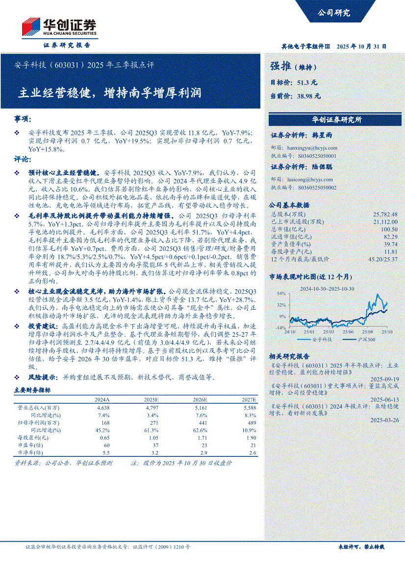安孚科技:华创证券-安孚科技-603031-2025年三季报点评:主业经营稳健,增持南孚增厚利润-251031