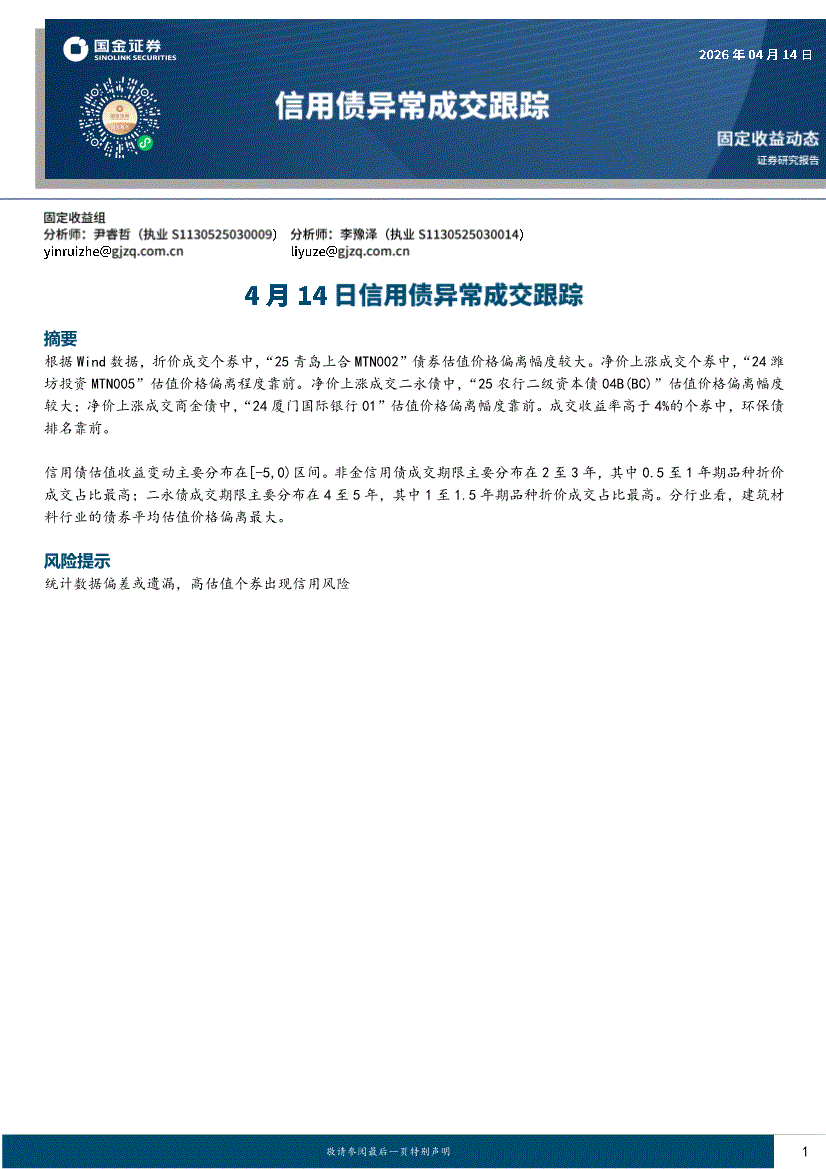 国金证券-4月14日信用债异常成交跟踪-260414