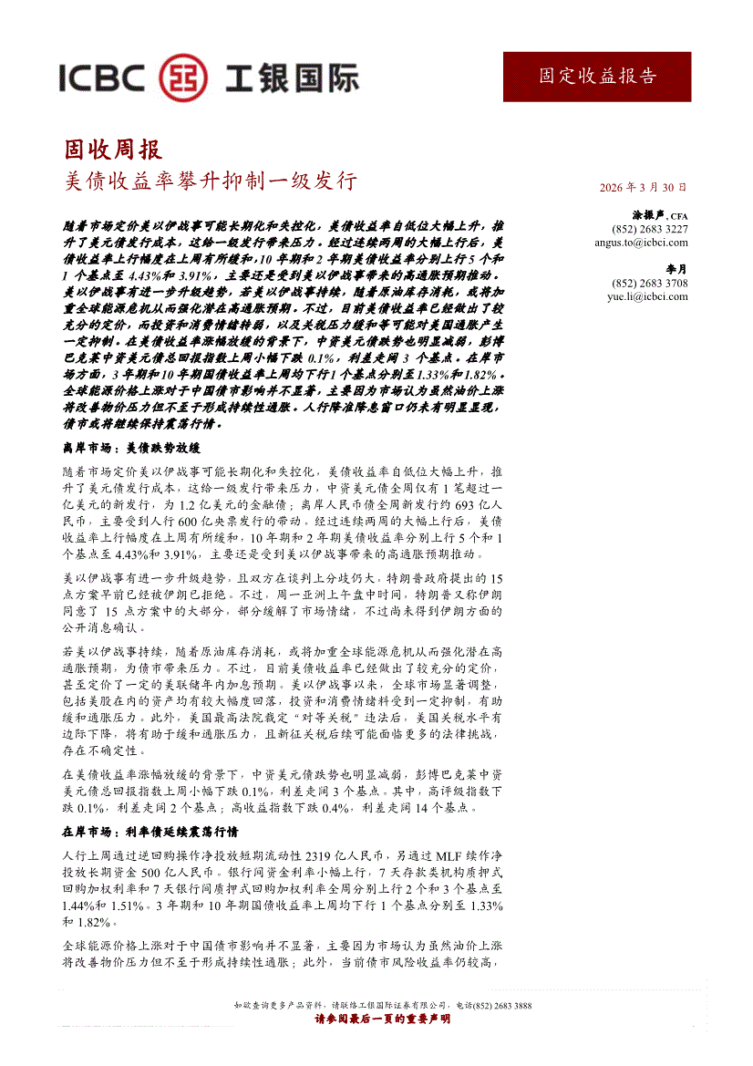 工银国际-固收周报:美债收益率攀升抑制一级发行-260330