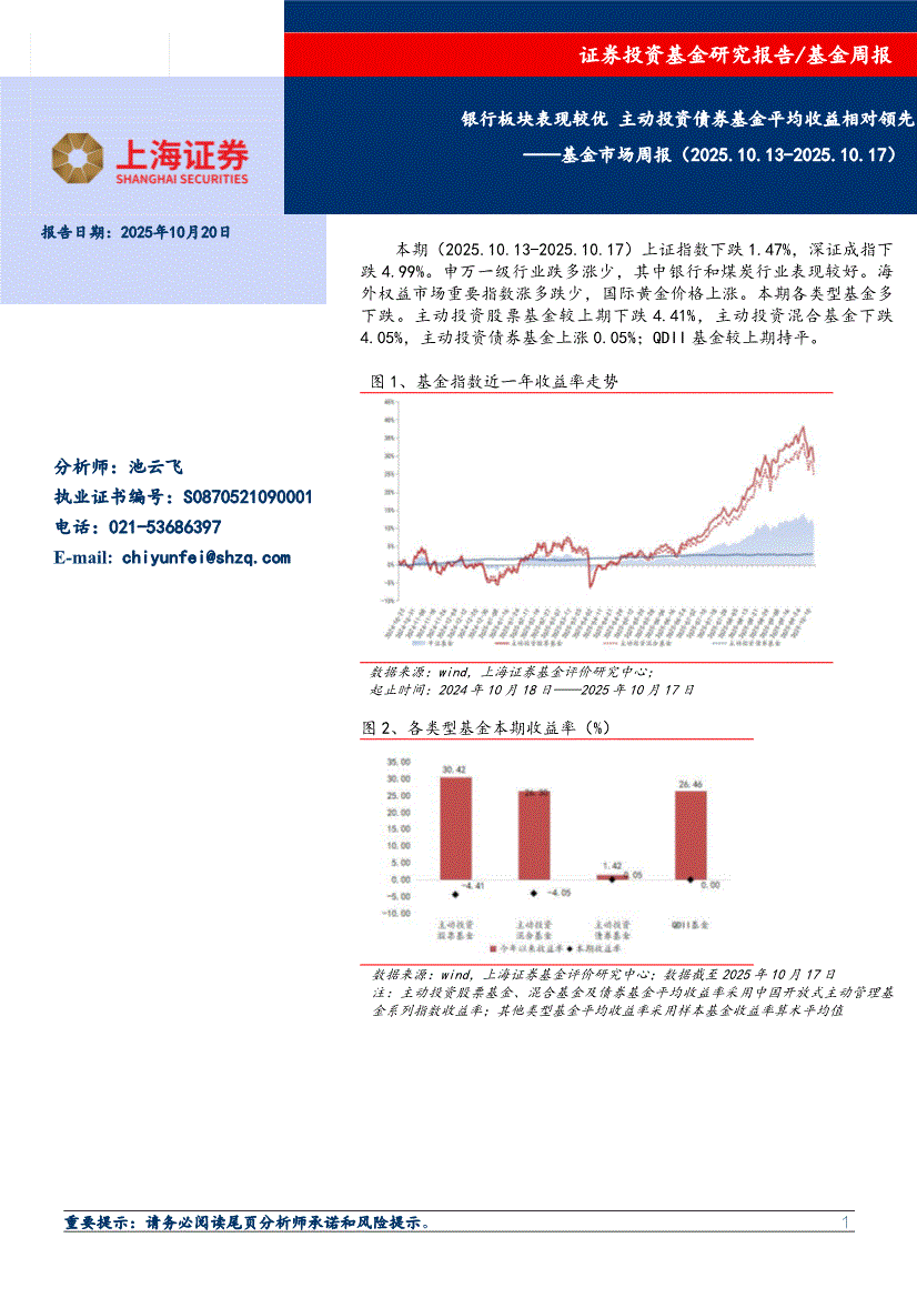 上海证券-基金市场周报:银行板块表现较优,主动投资债券基金平均收益相对领先-251020