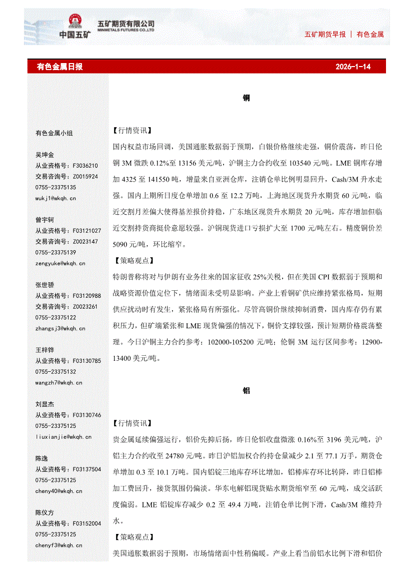 五矿期货-有色金属日报-260115