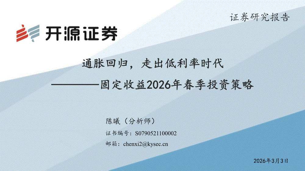 开源证券-固定收益2026年春季投资策略:通胀回归,走出低利率时代-260303