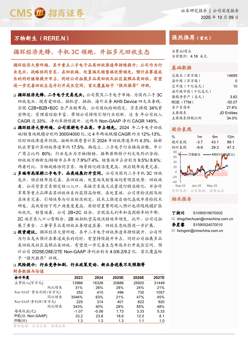 万物新生:招商证券-万物新生-RERE.US-循环经济先锋,手机3C领跑,开拓多元回收生态-251009