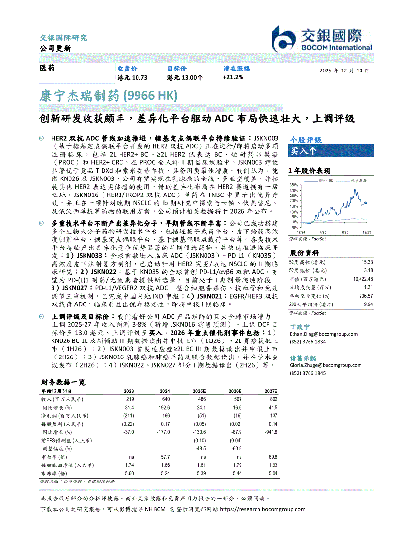 康宁杰瑞制药~B:交银国际-康宁杰瑞制药~B-9966.HK-创新研发收获颇丰,差异化平台驱动ADC布局快速壮大,上调评级-251210