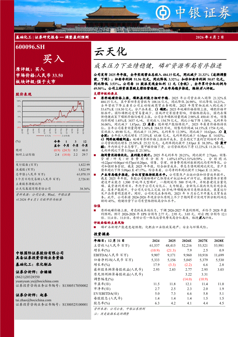 云天化:中银国际-云天化-600096-成本压力下业绩稳健,磷矿资源布局有序推进-260402