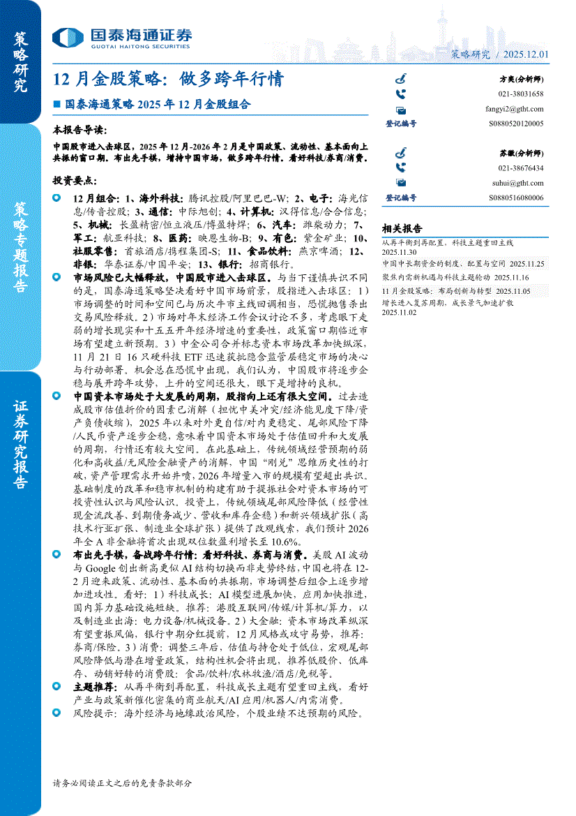 国泰海通证券-策略2025年12月金股组合:12月金股策略,做多跨年行情-251201